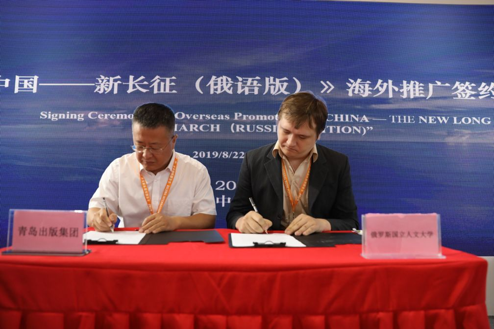 在签约仪式上,青岛出版集团党委副书记、总编辑李海涛代表集团与五家机构签订了版权输出协议。